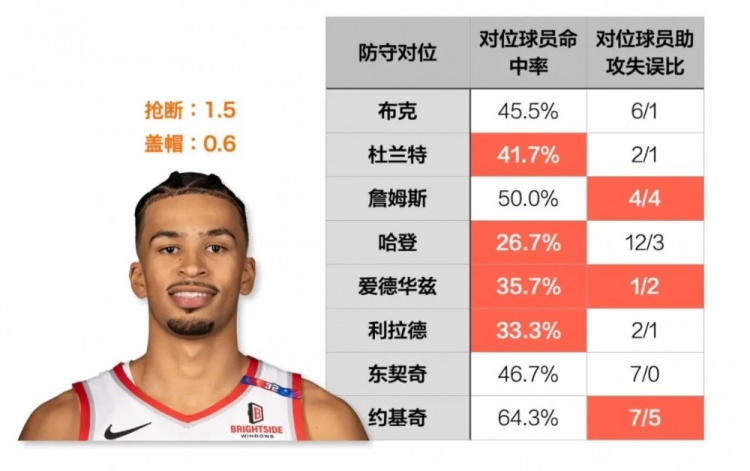 愛德華茲面對這位喬治亞大學(xué)的前隊友,則是攻也不行,傳也不行。不僅命中率被限制到35.7%的水平,失誤更是比助攻多......