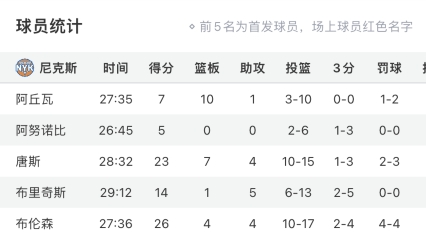三節(jié)結(jié)束時(shí),尼克斯落后31分,末節(jié)錫伯杜沒再讓先發(fā)球員登場(chǎng),首發(fā)五虎的出場(chǎng)時(shí)間都在20+。