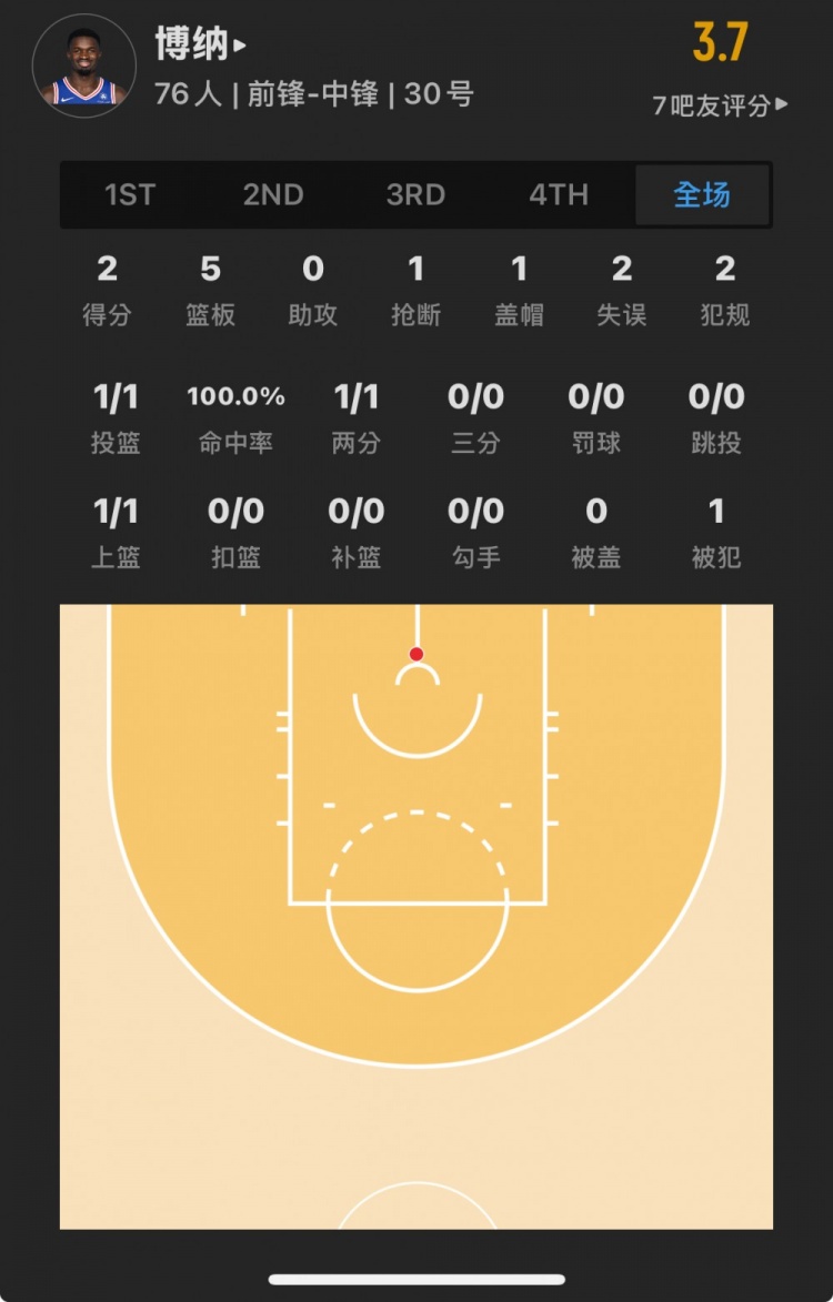 76人41號(hào)秀 阿德姆-博納 登場(chǎng)12.5分鐘