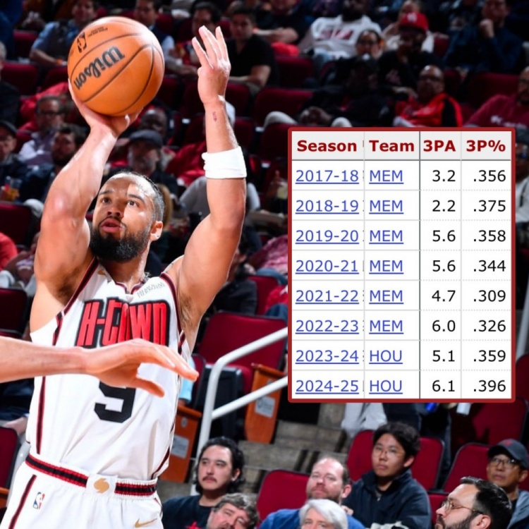 3月1日訊 據(jù)火箭記者Bradeaux統(tǒng)計(jì),本賽季狄龍-布魯克斯的場(chǎng)均三分出手?jǐn)?shù)及三分命中率皆生涯新高。