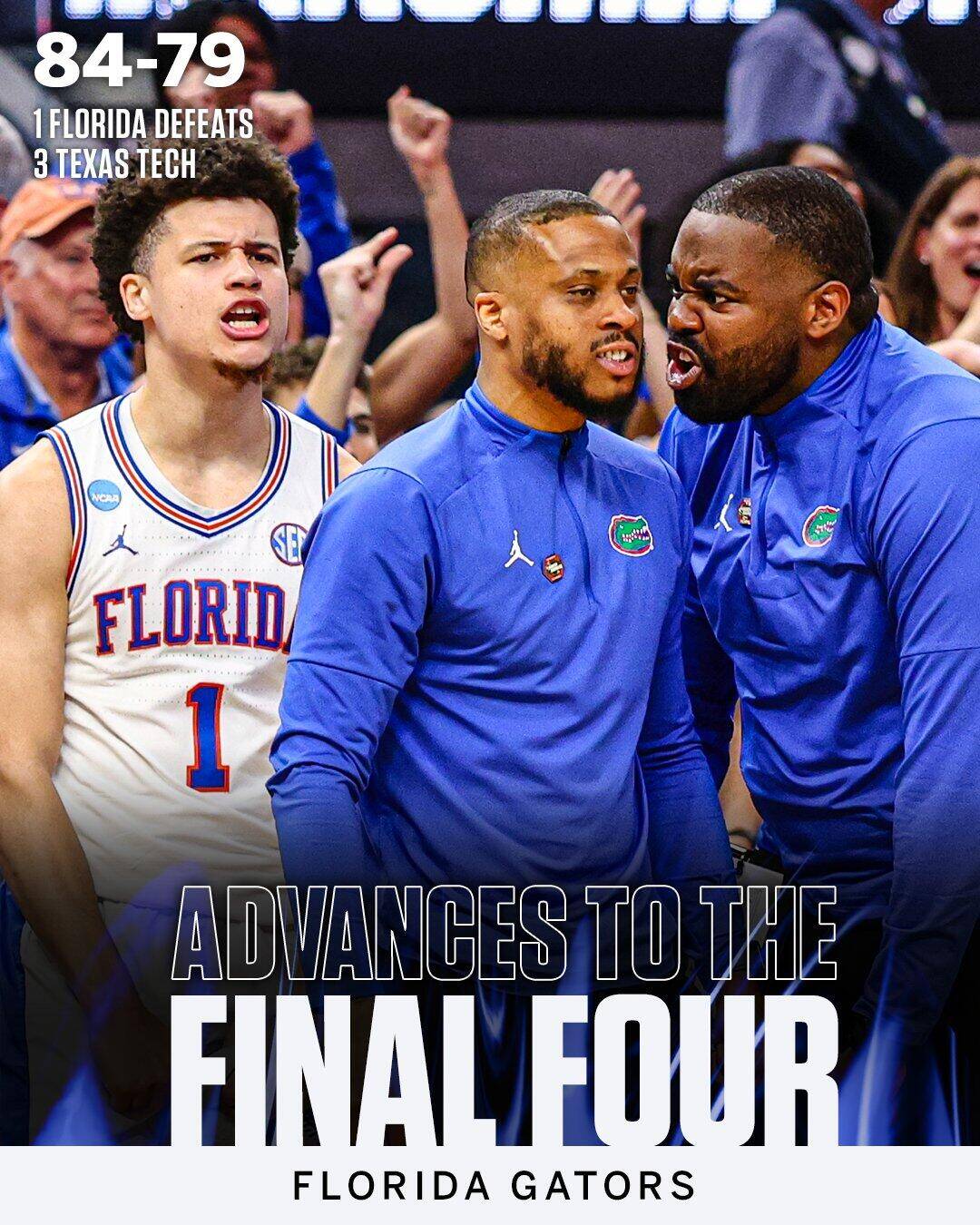 雙方下半場戰(zhàn)至一半仍是平局,得州理工延續(xù)過去一貫的表現,下半場突然發(fā)力拉開比分,一度取得兩位數的領先優(yōu)勢。但佛羅里達大學校史首位全美一陣球員、東南聯盟MVP小沃爾特-克萊頓站了出來,他在4分半的時間連投帶傳,先是三分+上籃連得5分,然后連續(xù)助攻隊友托馬斯-霍夫命中2個三分,隨后自己又是連轟2記三分,完全主宰了比賽,帶隊打出一波17-6逆轉比分,在比賽還剩1分鐘時助佛羅里達78-77領先。得州理工雖然叫出暫停,但已經亂了陣腳,最后一分鐘一直沒能打出有效的進攻,最終佛羅里達逐漸拉開分差,強勢晉級四強。