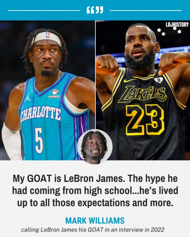網(wǎng)友挖出了馬克-威廉姆斯2022年稱贊詹姆斯的言論,他說道:“我的GOAT是勒布朗-詹姆斯,他從高中畢業(yè)后就打出了足夠的聲勢,他已經(jīng)滿足了所有的外界期待,甚至超越了外界期待。還有他的場外成就,建造一所學(xué)校,鼓勵他的社區(qū),所有的這些事情都讓他成為GOAT。”