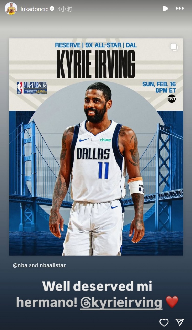東契奇轉發(fā)相關報道,并評論道:“實至名歸@歐文??。”