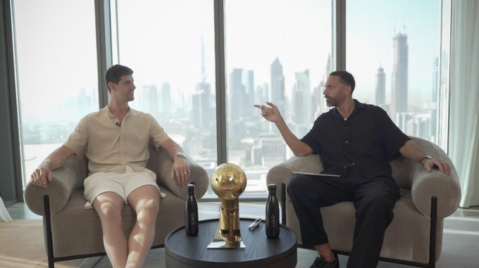 2月18日訊 費迪南德更新社媒動態(tài),曬出專訪皇馬門將庫爾圖瓦的照片。