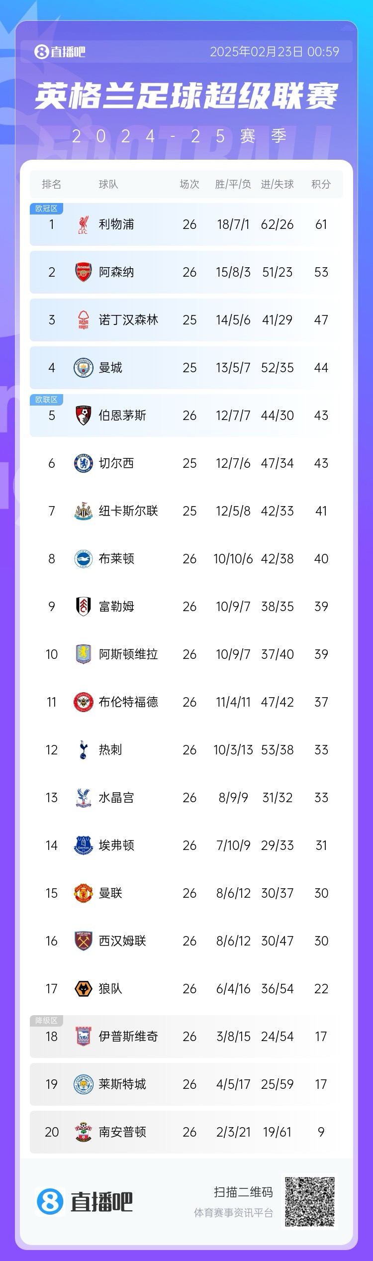 2月23日訊 阿森納vs西漢姆,槍手主場0-1落?。岽?-1伊普斯維奇。