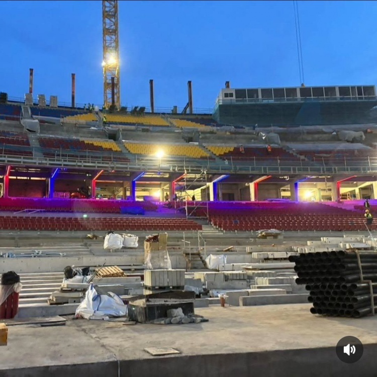 巴薩翻新諾坎普球場,相關(guān)工程正在進(jìn)行中,博主曬出施工照片,確認(rèn)諾坎普球場仍在測試第一層看臺(tái)的照明系統(tǒng)。