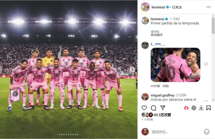 2月23日訊 今天上午,邁阿密?chē)?guó)際在美職聯(lián)第1輪主場(chǎng)迎戰(zhàn)紐約城,梅西助攻雙響幫助球隊(duì)2-2絕平對(duì)手,賽后梅西在社交媒體發(fā)文談及比賽。