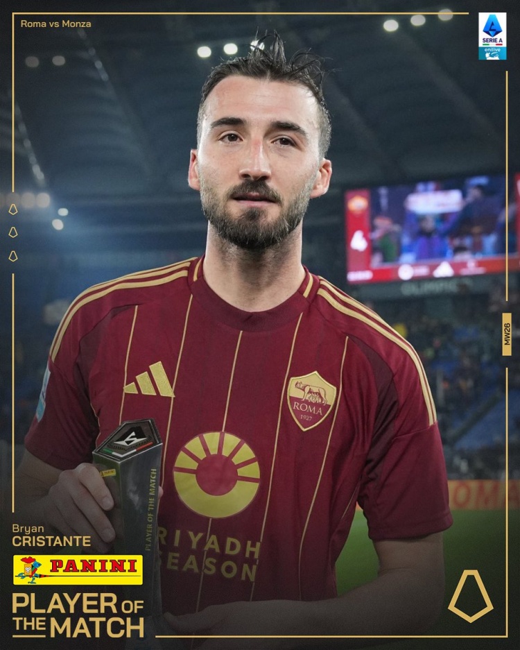 2月25日訊 在羅馬4-0蒙扎的意甲聯(lián)賽中,羅馬中場克里斯坦特當(dāng)選全場最佳球員。