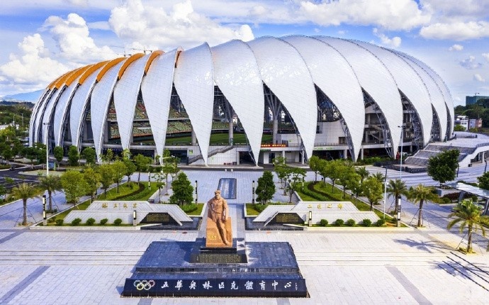 五華奧體中心惠堂體育場。五華于1979年被國家體委譽(yù)為“足球之鄉(xiāng)”,有著源遠(yuǎn)流長的足球歷史與文化。體育場主體是由54片純白色鋁板打造而成的“羽翼”,沿主、次入口形成的中軸線對(duì)稱布置。五華縣為地級(jí)梅州市下轄縣。原來的梅縣鐵漢俱樂部主場位于梅州市梅縣區(qū),因此,梅縣鐵漢在市區(qū),而梅州客家其實(shí)在郊縣。