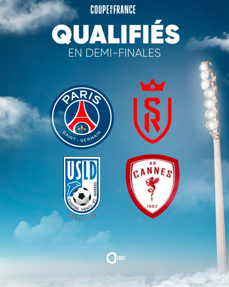 本賽季的法國杯4強(qiáng)球隊(duì)出爐: