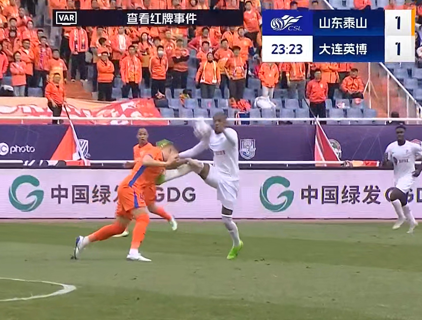 02月28日訊 泰山vs大連比賽第25分鐘,卡蘭加蹬踏卡扎爾胸部,后者球衣被蹬爛+拉出血痕!裁判在觀看VAR后,改判黃牌為紅牌,卡蘭加被罰下,英博少打一人! 標(biāo)簽: 足球 中超 中國足球 山東泰山 大連英博
