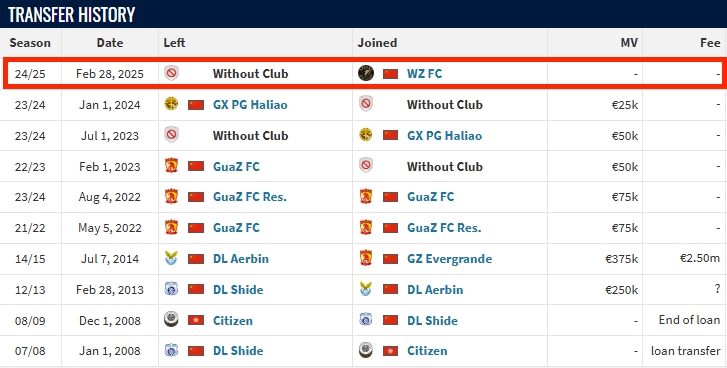 2024年1月,李學鵬從廣西平果哈嘹離開,此后一直沒有下家。