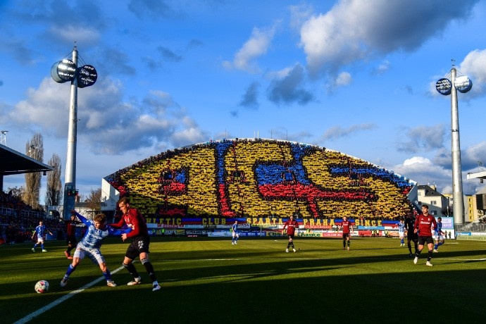 捷克甲,布拉格斯巴達做客奧洛穆茨。奧洛穆茨西格瑪這個半圓弧形看臺,太有特色了。