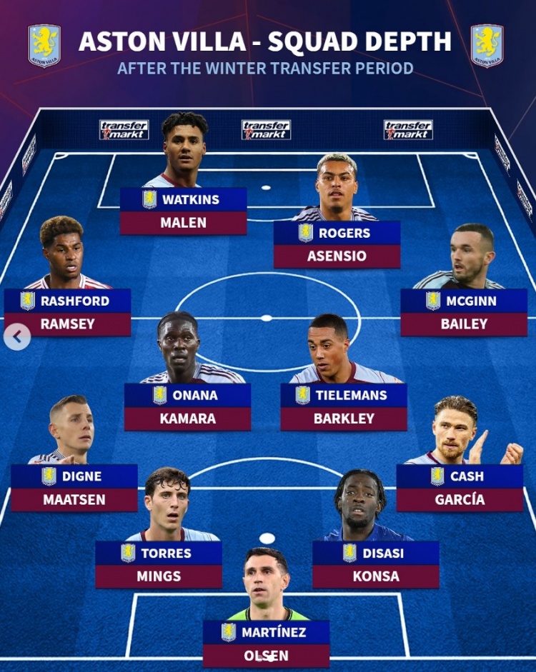 2月4日訊 維拉在冬窗引進(jìn)拉什福德、迪薩西、阿森西奧等多人,德轉(zhuǎn)也盤點(diǎn)了維拉目前可以排出的首發(fā)以及各位置替補(bǔ)人選,具體如下: