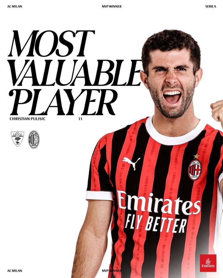 普利西奇本場(chǎng)打進(jìn)兩球,據(jù)米蘭官方社媒消息,他也被評(píng)為此役隊(duì)內(nèi)最佳球員。