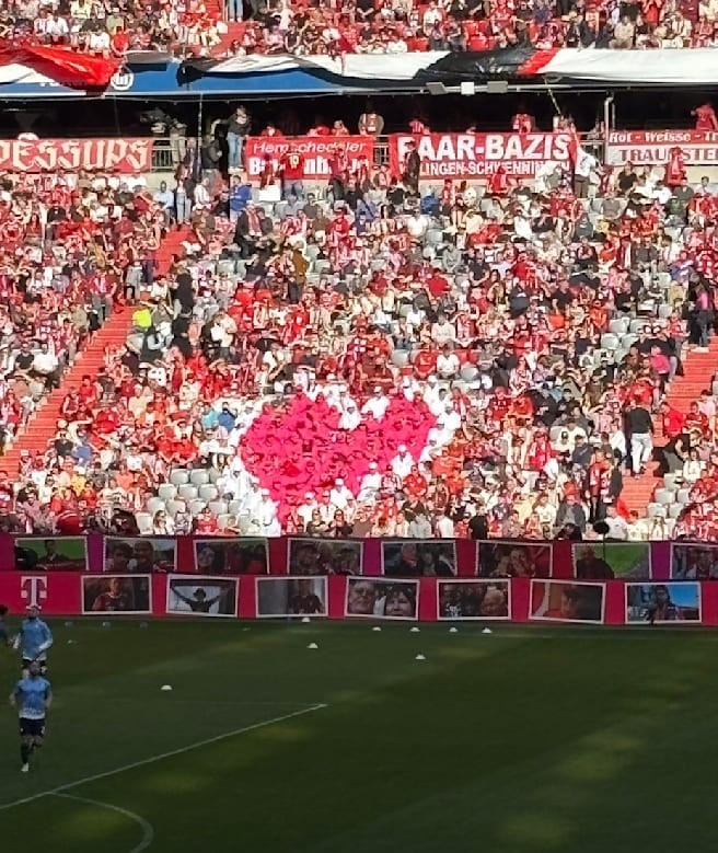 3月9日訊 本輪德甲,拜仁在主場2-3不敵波鴻?!秷D片報》報道,拜仁安聯(lián)球場看臺上標(biāo)志性的德國電信“T”字形圖案在本場比賽被心形圖案取代。