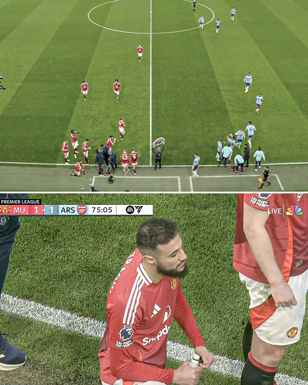 03月10日訊 本輪英超曼聯(lián)主場1-1戰(zhàn)平阿森納,比賽第76分鐘,就在賴斯破門后,主裁將球員叫到場邊,給了一次補水的機會。