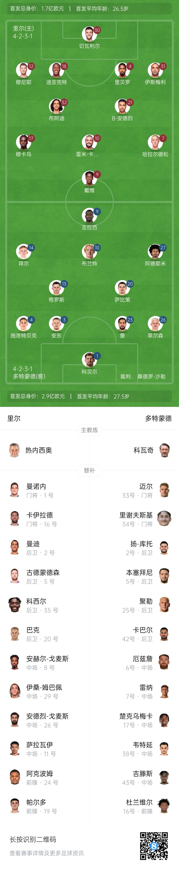 3月13日訊 歐冠16強(qiáng)次回合,里爾主場迎戰(zhàn)多特比賽即將打響。賽前首發(fā)出爐。