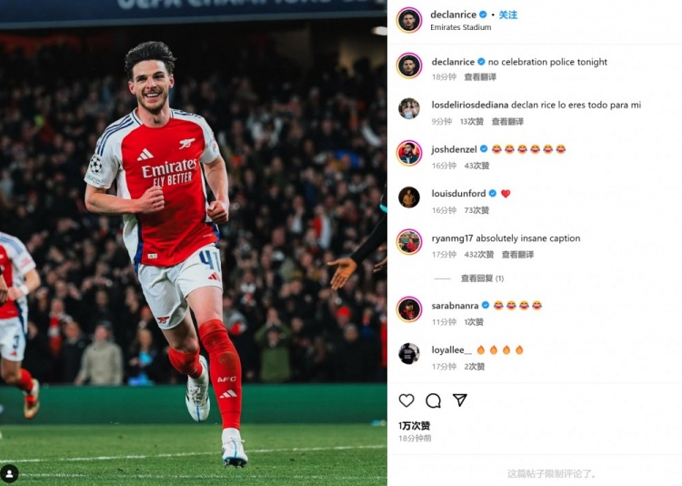 賴(lài)斯也在賽后通過(guò)社媒曬出自己進(jìn)球后的慶祝照,并調(diào)侃:“今晚沒(méi)有慶祝動(dòng)作的道德警察?!?/p>