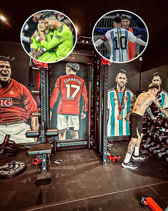 從曝光的照片可以看到,加納喬在C位放置的是自己身穿曼聯(lián)球衣的海報,而左側(cè)是C羅在首次效力曼聯(lián)期間的海報,右側(cè)則是梅西身穿阿根廷球衣贏得世界杯后的領(lǐng)獎?wù)铡?/p>