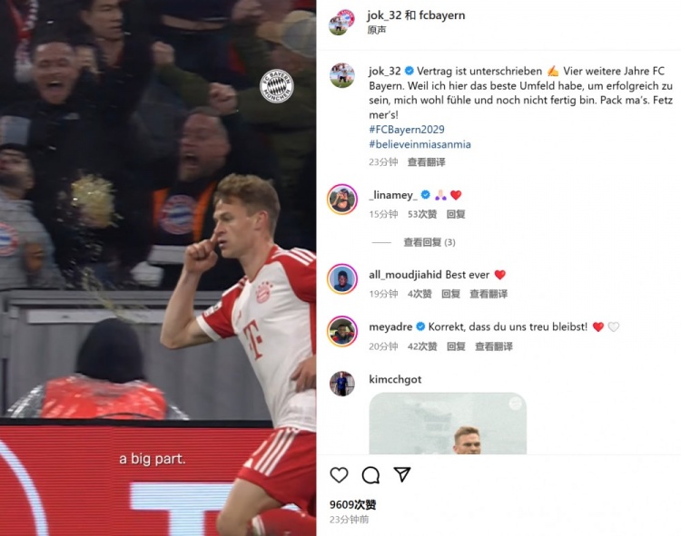 基米希轉(zhuǎn)發(fā)了拜仁的官宣視頻,并配文:“合同已簽署??我將在拜仁再戰(zhàn)4年。因為這里有我取得成功的最佳環(huán)境,我在這里過得很舒服,并且還有任務(wù)尚未完成。讓我們開始為之努力吧!”