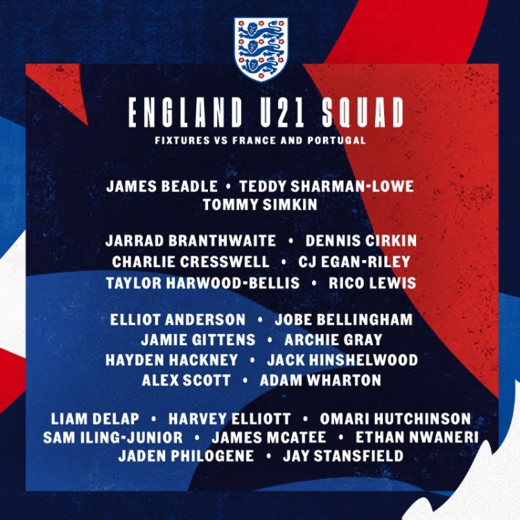 3月14日訊 英足總公布英格蘭U21隊大名單,里科-劉易斯、小貝林厄姆、埃利奧特、麥卡蒂、恩瓦內(nèi)里在列。本月的國際比賽日,英格蘭U21隊將與法國U21隊和葡萄牙U21隊進(jìn)行2場熱身賽。