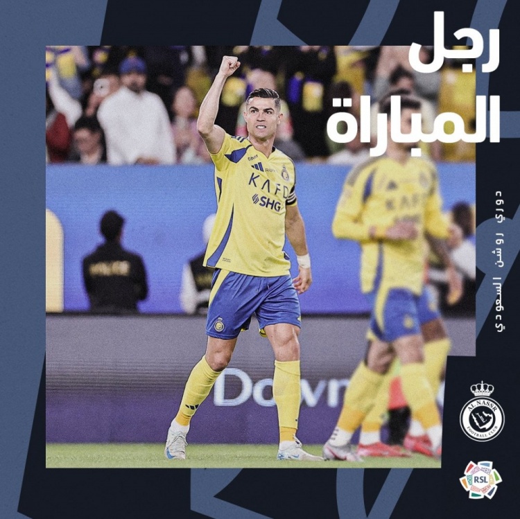 沙特聯(lián)賽官方也在賽后宣布:“經(jīng)過球迷投票,C羅當選為本場聯(lián)賽的全場最佳球員。”