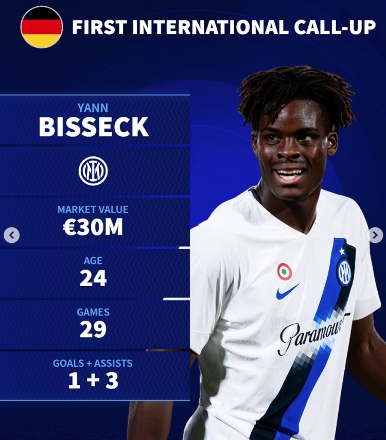 比塞克(國(guó)米,德國(guó)),3000萬(wàn)歐,24歲。29場(chǎng)1球3助攻