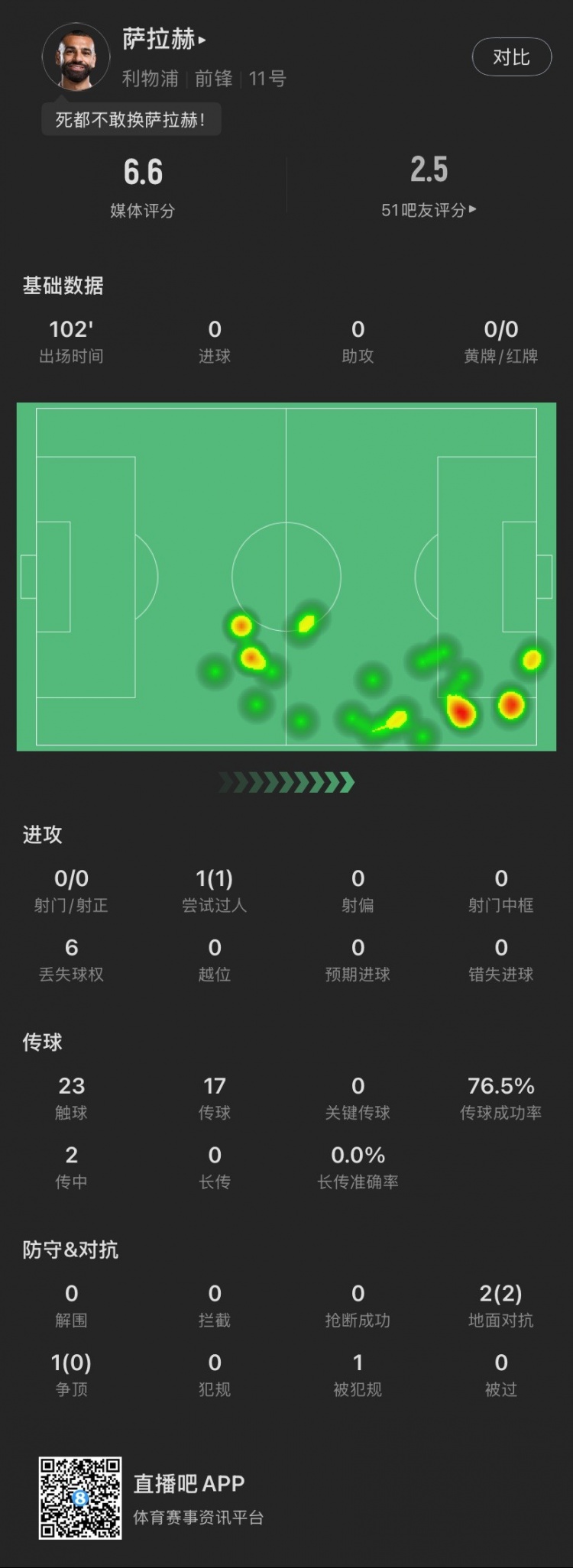 薩拉赫本場(chǎng)主要數(shù)據(jù)↓