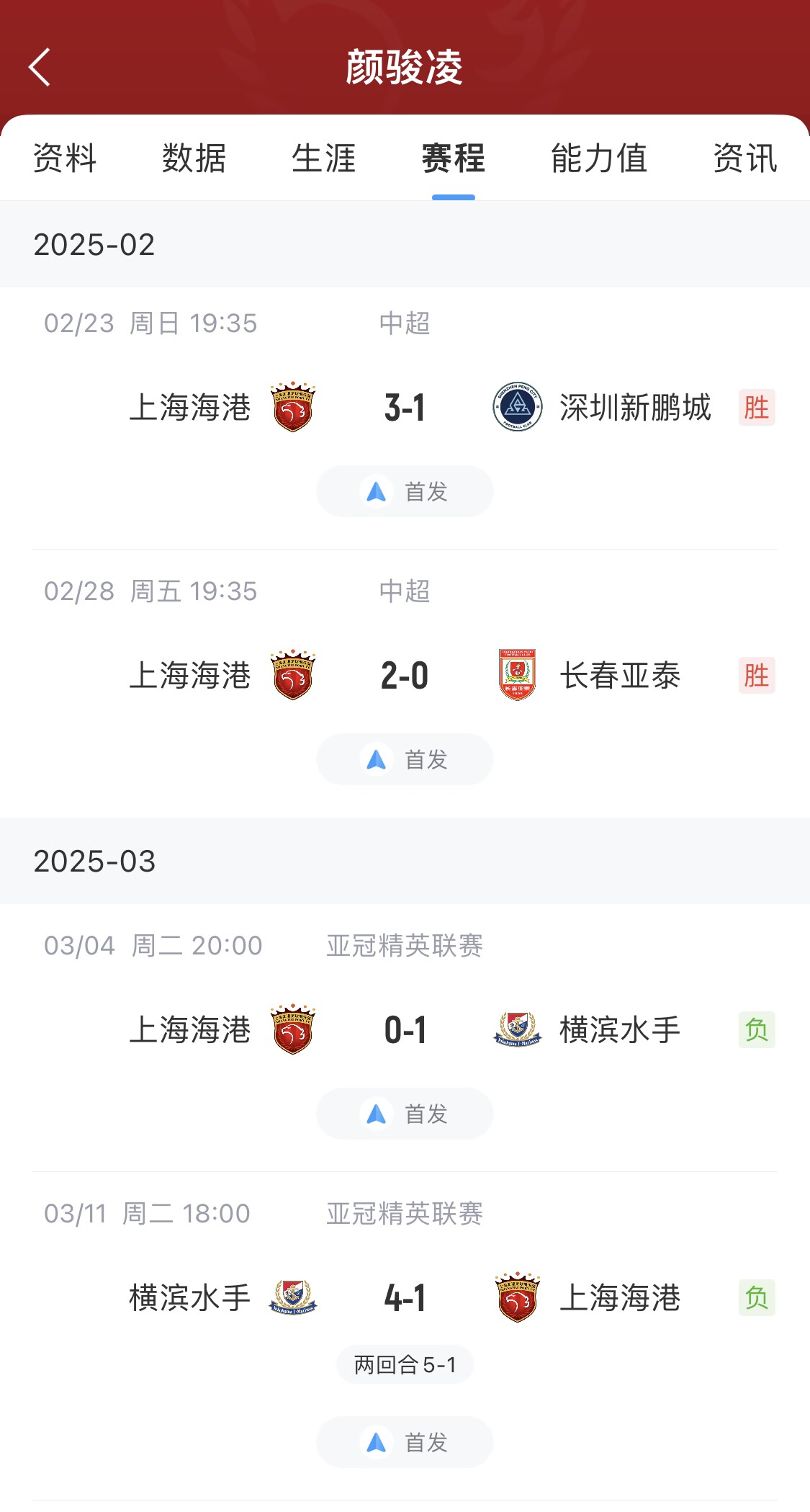但2025賽季中超首輪泰山vs河南,王大雷出擊踢倒對(duì)手染紅,2月23日之后未參加正式比賽。而顏駿凌出戰(zhàn)了中超+亞冠的所有比賽。