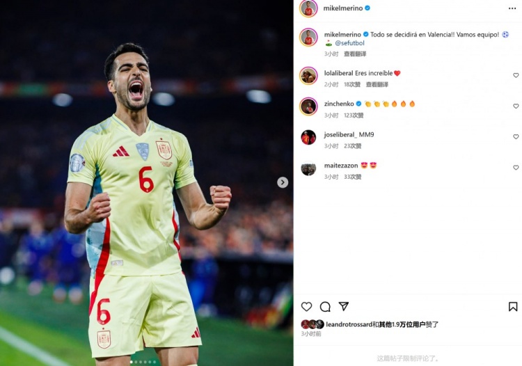 本場比賽梅里諾替補登場在傷停補時階段打進(jìn)絕平進(jìn)球,這也是他繼對陣切爾西打進(jìn)制勝球后連場破門。賽后他也在社媒曬出慶祝照,配文寫道:“一切將在瓦倫西亞決定,讓我們一起加油!”