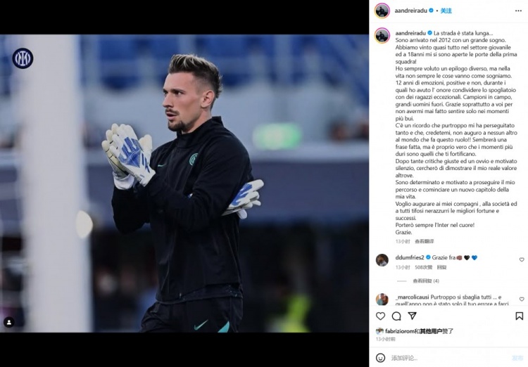 拉杜寫道:“這是一段很長(zhǎng)的道路。2012年,我懷揣偉大的夢(mèng)想來到了國(guó)米,我們幾乎贏得了青年賽事的所有冠軍。18歲的時(shí)候,一線隊(duì)的大門向我敞開。我一直想要一個(gè)不同的結(jié)局,但生活并不總是按照我們的想法進(jìn)行?!?/p>