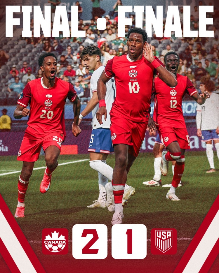 3月24日訊 在中北美及加勒比海國(guó)家聯(lián)賽季軍戰(zhàn)中,加拿大2-1擊敗美國(guó),獲得季軍。