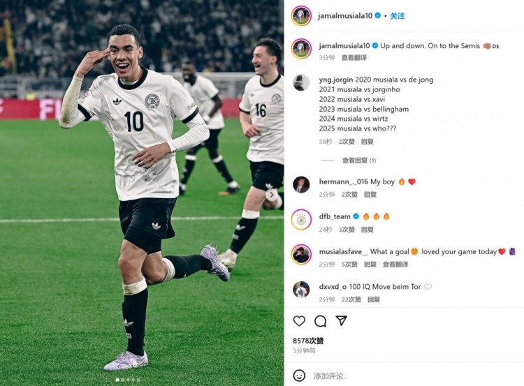 3月24日訊 德國在歐國聯(lián)八強戰(zhàn)次回合3-3戰(zhàn)平意大利,總比分5-4晉級,穆西亞拉取得進球。