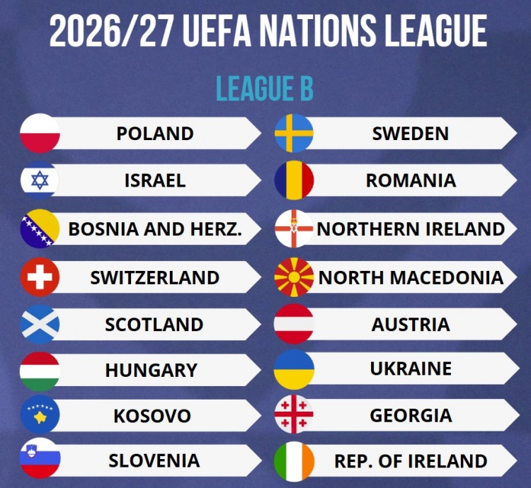 2026-27賽季歐國(guó)聯(lián)B級(jí)別代表隊(duì)名單↓