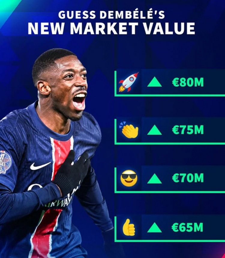 3月24日訊 登貝萊在進(jìn)入2025年后狀態(tài)爆表,是同期五大聯(lián)賽進(jìn)球最多的球員,《轉(zhuǎn)會(huì)市場(chǎng)》也確認(rèn)他的身價(jià)將會(huì)顯著提升。