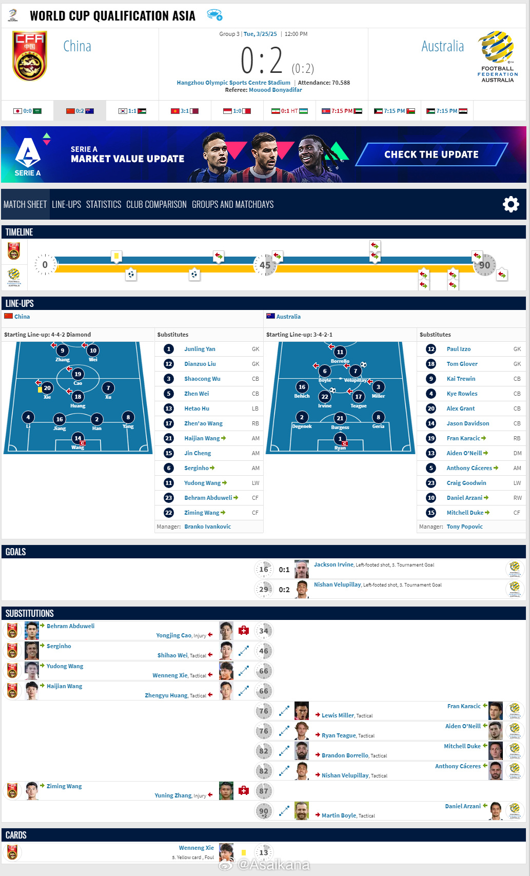 2026年世界杯亞洲區(qū)預(yù)選賽,中國(guó)0-2澳大利亞比賽報(bào)告 ???