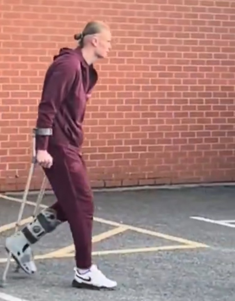 據(jù)悉,哈蘭德離開球場時看起來沒有表現(xiàn)出痛苦,但他拄著拐杖,左腿穿著防護(hù)靴行走。