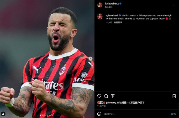 沃克寫(xiě)道:作為米蘭球員的首場(chǎng)勝利,我們晉級(jí)了半決賽!非常感謝大家今天的支持。