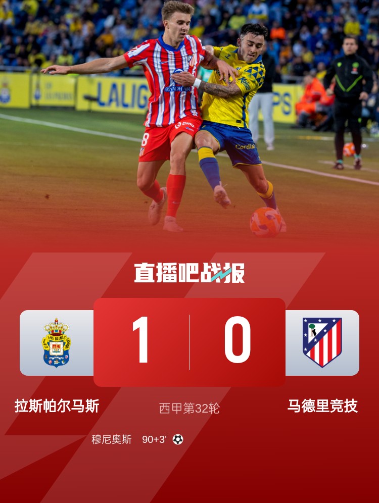 西甲聯(lián)賽第32輪,馬競(jìng)客場(chǎng)0-1遭拉斯帕爾馬斯絕殺,落后巴薩10分。