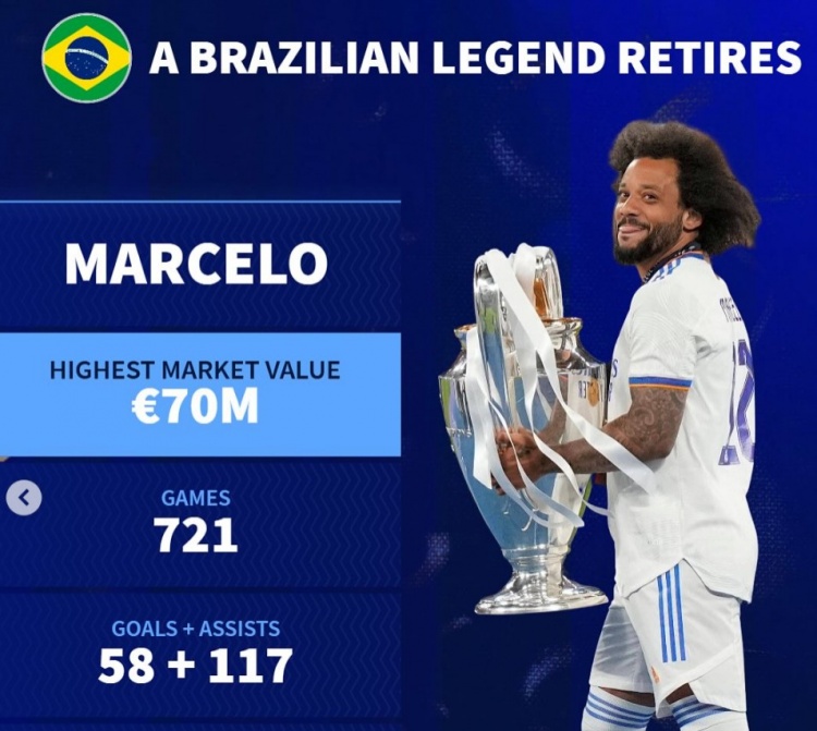 2月7日訊 皇馬傳奇左后衛(wèi)馬塞洛已經(jīng)官宣退役,《轉(zhuǎn)會市場》也列出了馬塞洛的生涯成就。