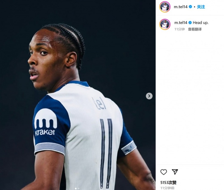 他也在賽后通過社媒曬出自己的比賽照紀念熱刺首秀,并鼓勵全隊:“抬起頭來?!?/p>