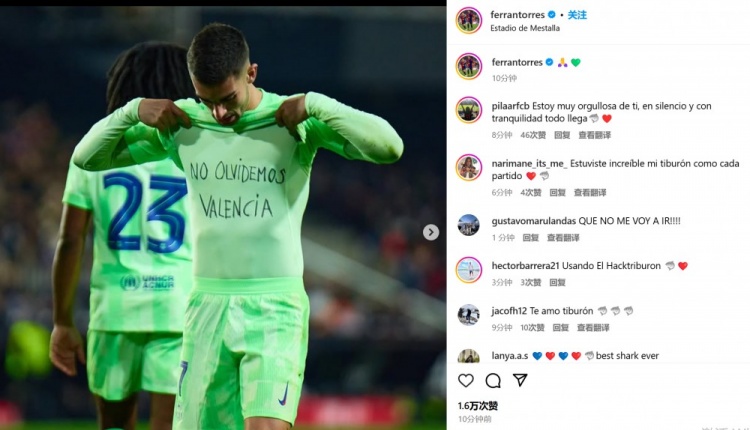 他也在進(jìn)球后掀開球衣,露出內(nèi)衣上的“我們不要忘記瓦倫西亞”字樣,并且在賽后通過社媒曬照并配上????????符號。