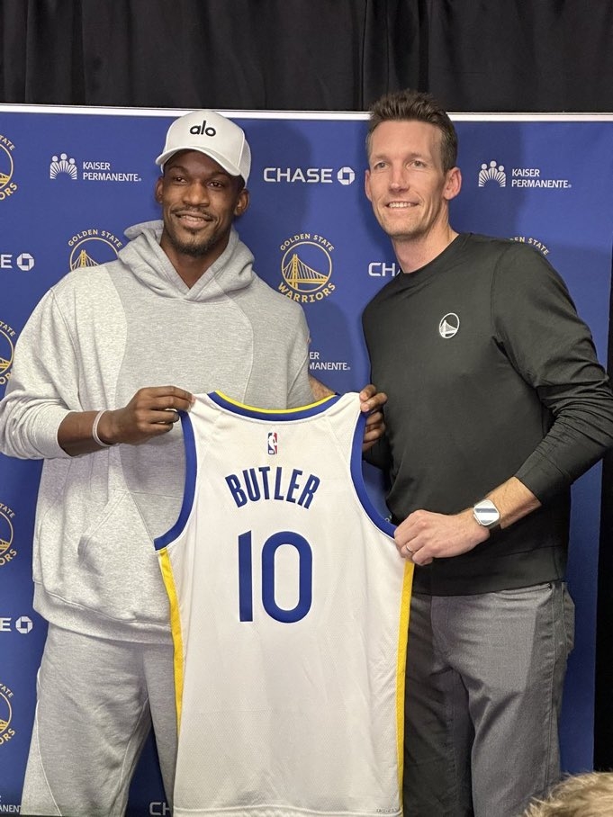 NBA勇士隊(duì)為新援巴特勒舉辦新聞發(fā)布會(huì),巴特勒在發(fā)布會(huì)上拿到了自己的勇士10號(hào)球衣,鄧?yán)S表示這是他新秀賽季效力勇士時(shí)所穿的球衣號(hào)碼,而巴特勒透露,他選擇10號(hào)球衣是為了致敬好友內(nèi)馬爾。