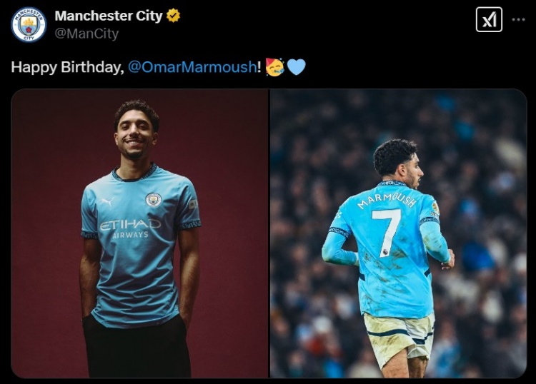 2月7日訊 今天是曼城新援馬爾穆什26歲生日,曼城官推也曬照為其送上生日祝福。