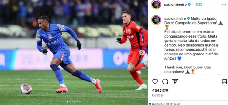 賽后申花新援米內羅在社媒發(fā)文慶祝奪冠,他寫道:“感謝上帝,我們奪得了超級杯冠軍!首秀便能幫助球隊贏得冠軍,真的讓我感到莫大的幸福,場上所有人都充滿勇氣、全力以赴,從未放棄的我們也得到了回報!相信這場比賽給接下來的一個偉大的賽季開了個好頭!”