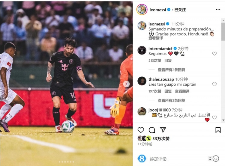 此役在洪都拉斯奧林匹克大都會球場進(jìn)行,賽后梅西在社交媒體上曬出自己的照片,配文:“備戰(zhàn)階段增加了一些比賽時間,感謝你們所做的一切,洪都拉斯!”