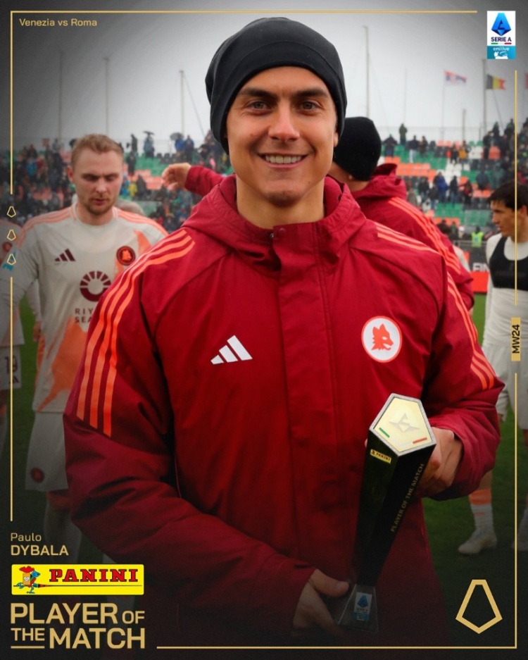 在第24輪意甲聯賽,羅馬客場1-0戰(zhàn)勝威尼斯。迪巴拉為羅馬首發(fā)出場,并在第57分鐘罰進制勝點球。迪巴拉在本場比賽的傳球準確率為78.3%,5次成功對抗,3次成功傳中,賽后當選為比賽最佳球員。
