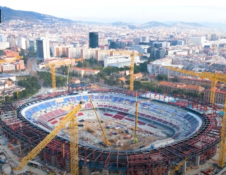世體的記者日前到諾坎普改造工程的施工現(xiàn)場探尋,那里還是緊張施工的情景,巴薩已經(jīng)向當?shù)卣暾?X24小時(每周6天,每天24小時)的施工令趕進度。
