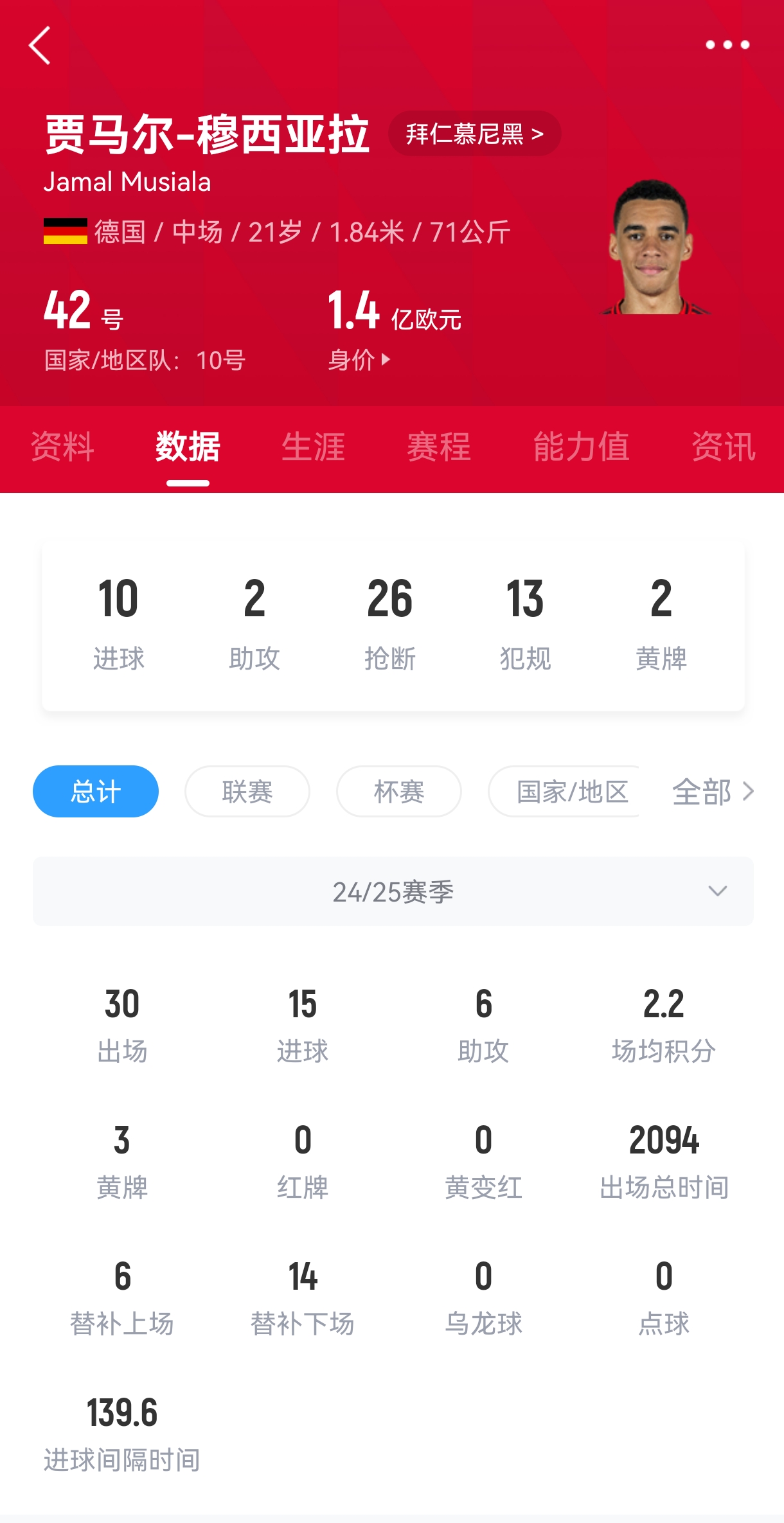 穆西亞拉本賽季數(shù)據(jù)